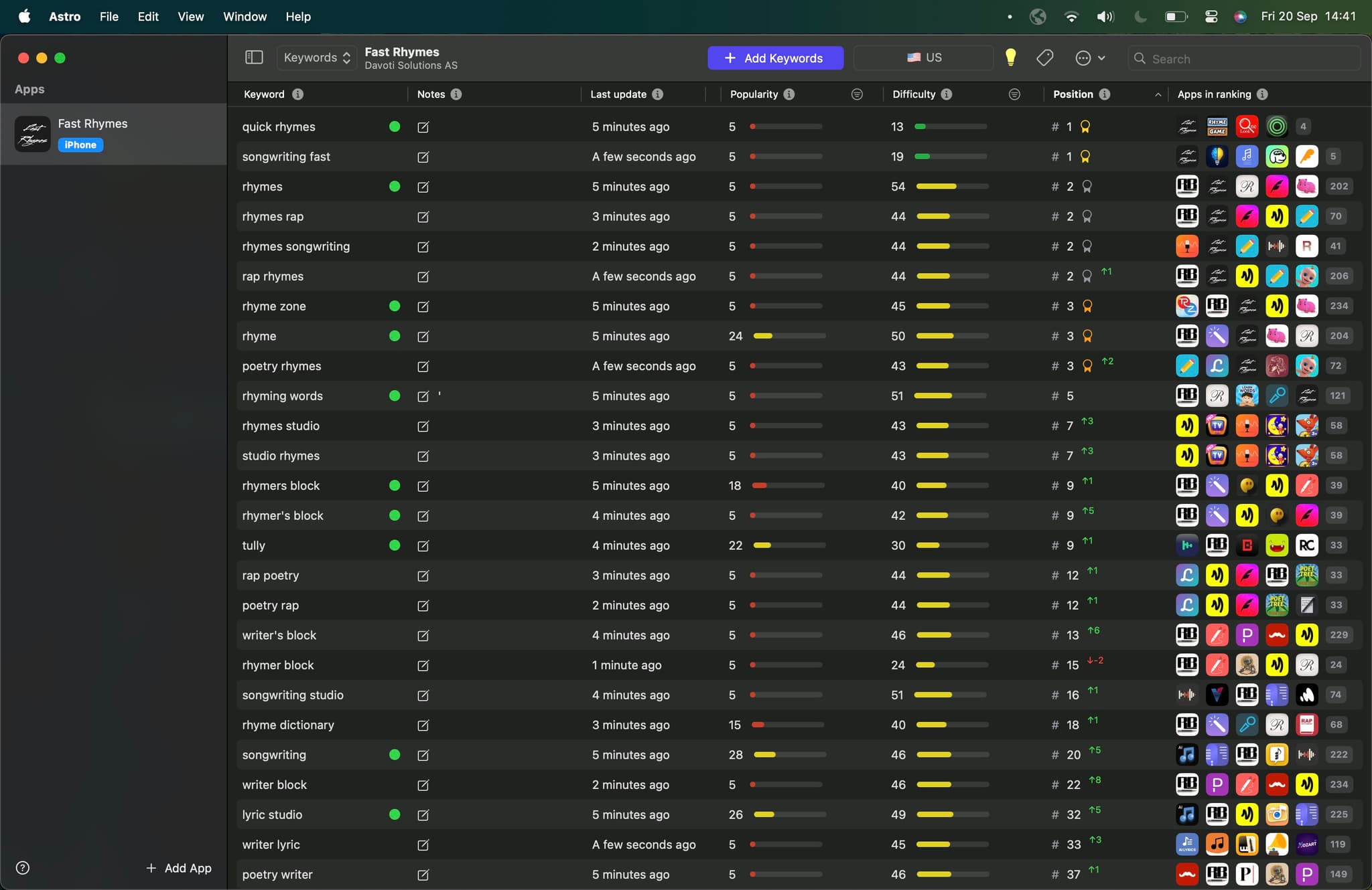 For the past four years building Fast Rhymes, marketing has not been in the focus. Organic traffic was pure luck from day 1. Then I started reading up on app marketing and Apple Search Ads, which lead me to ASO. You've probably heard of SEO, Search Engine Optimization. ASO, App Store Optimization, is the mobile equvialent for the Apple App Store and the Google Play store. Whenever I've read about these subjects it's always seemed over complicated to me, but after diving into it, it was a lot simpler than I thought.